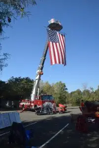 1972 Mack Aerialscope displayed a large American Flag throughout the day.