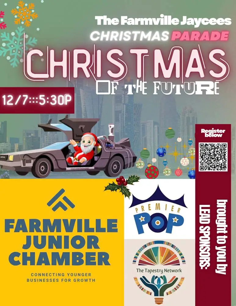 Its that time again! We are gearing up for the Farmville Christmas parade that will take place on December 7, 2025 at 5:30pm. Looking forward to sharing this great Farmville Tradition with you!