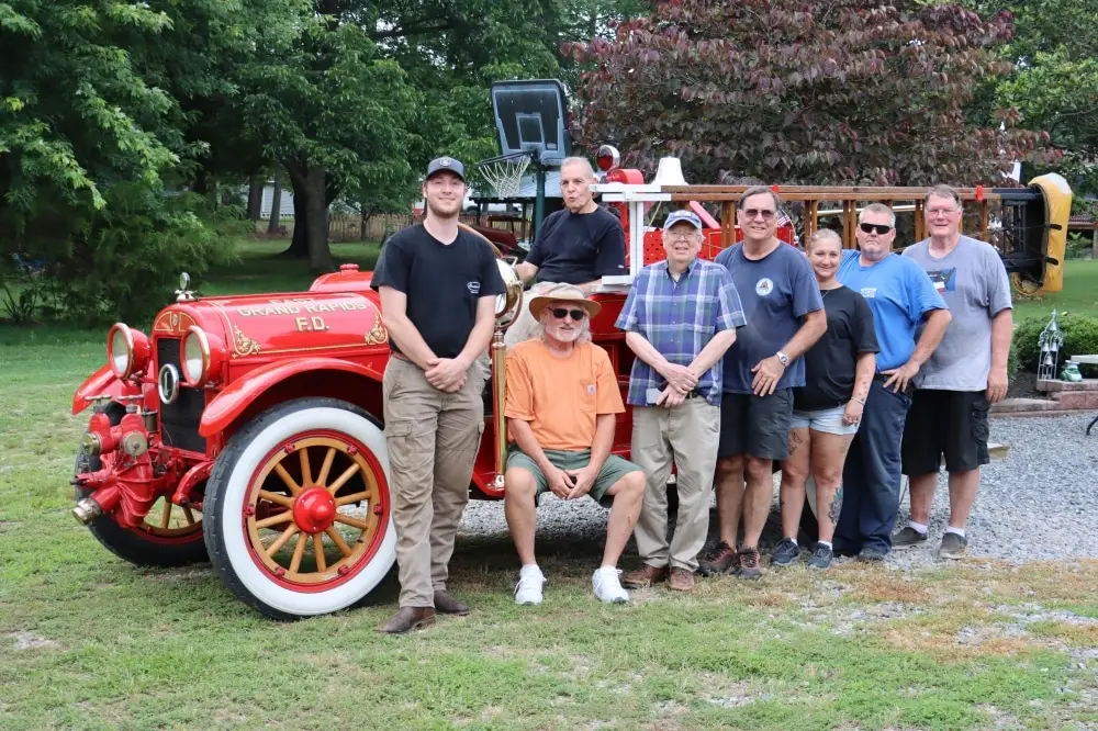 On Saturday July 1st, 17 central region members congregated at Tom Herman’s FIRE TRUCK FARM for an all day open house, social & work day. The theme of the day was “THE ODHFS 1921 REO/BOYER PUMPER NEEDS TO SHINE”!